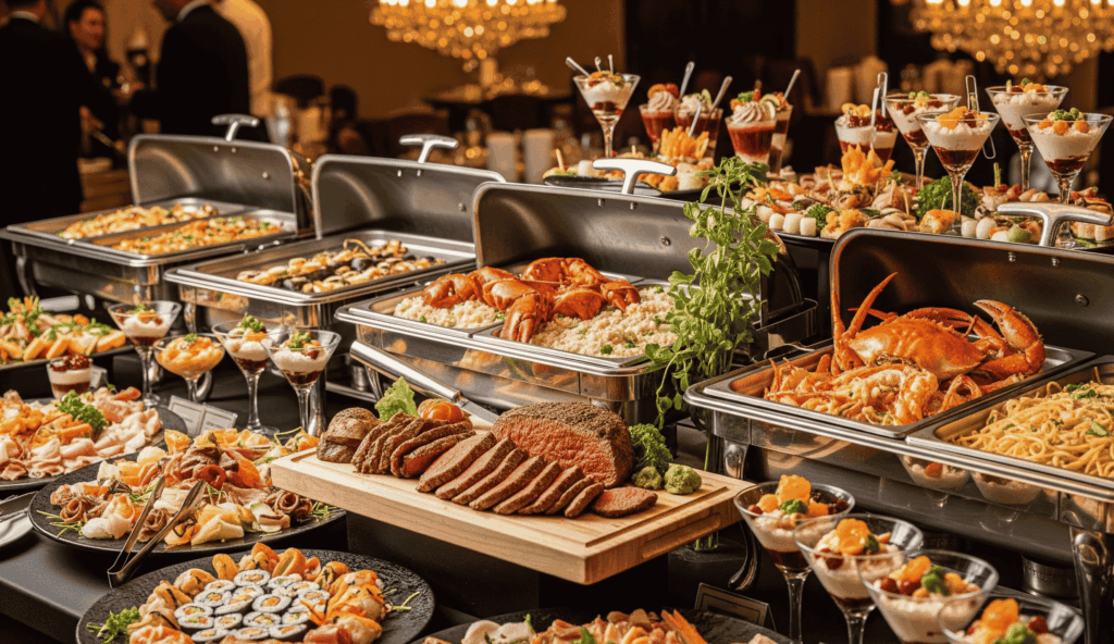 • 高級外燴:每人 NT$1200 起,常見牛排、龍蝦、甜點吧